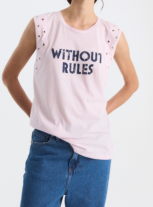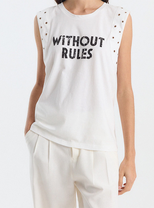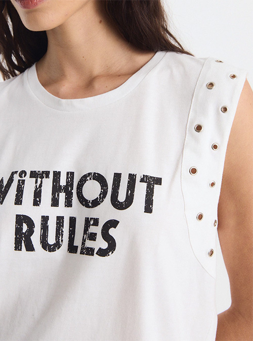 Musculosa de jersey con estampa frontal y ojales de metal para un look super canchero