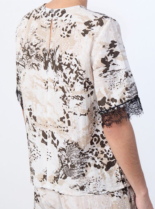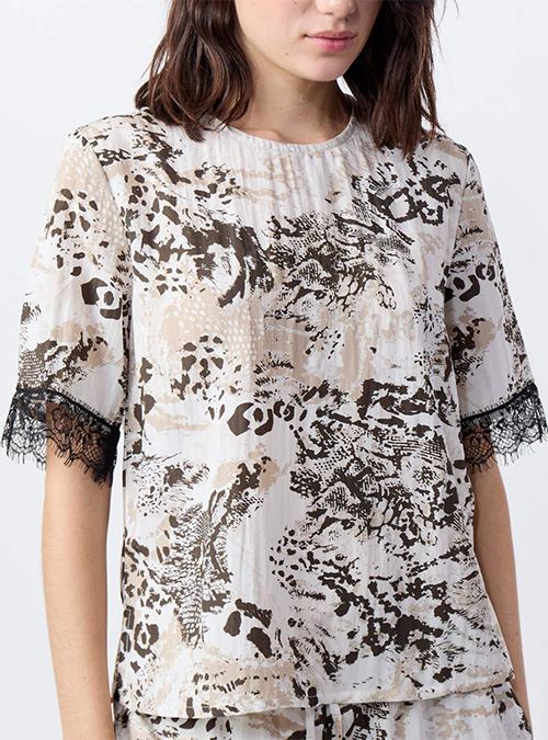 Blusa liviana con estampa animal print sutil en colores neutros y encaje en las mangas para levantar cualquier look! Perfecta para cualquier ocasión