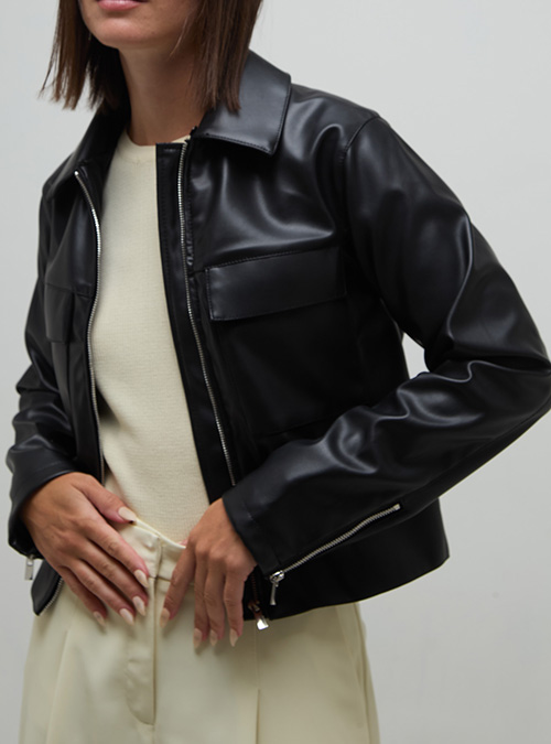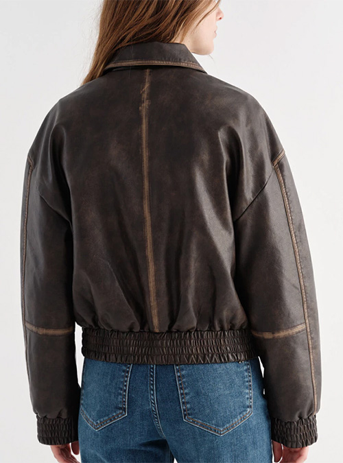 Campera de PU estilo bomber, detalle de desgaste en costuras Monstera.