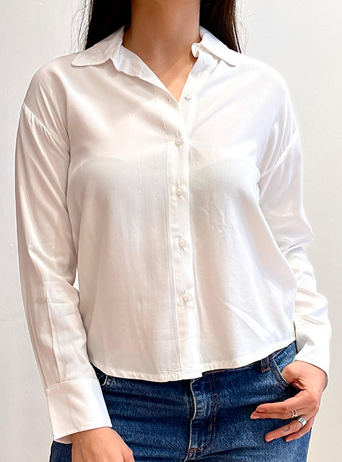 Camisa básica manga larga de poplin liso, super liviana y fresca para los días de calor