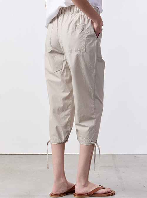 Cintura elastizada con cordón para ajustar, cerramiento al frente con botón y cierre oculto bajo solapa para facilitar el acceso, cuatro bolsillos aplicados y jareta en botamanga para ajustar.