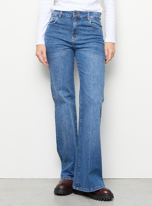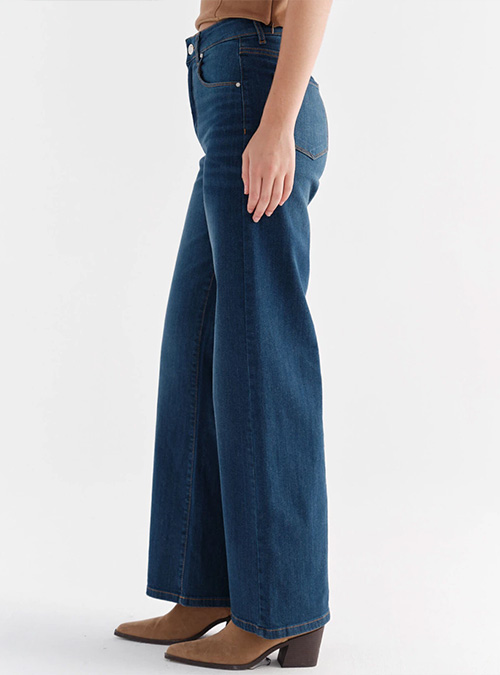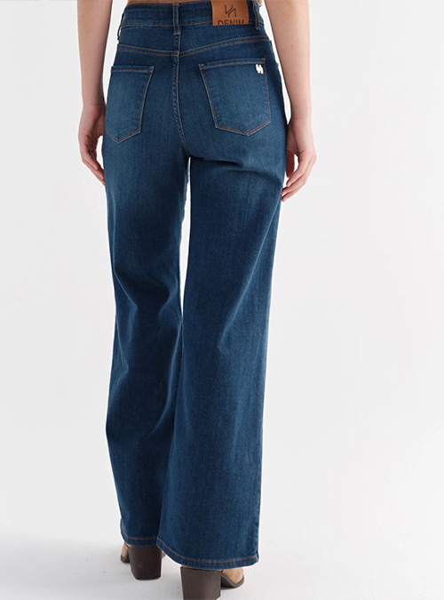 Jean corte Wide Leg, tiro alto, cintura bien marcada, color azul oscuro.